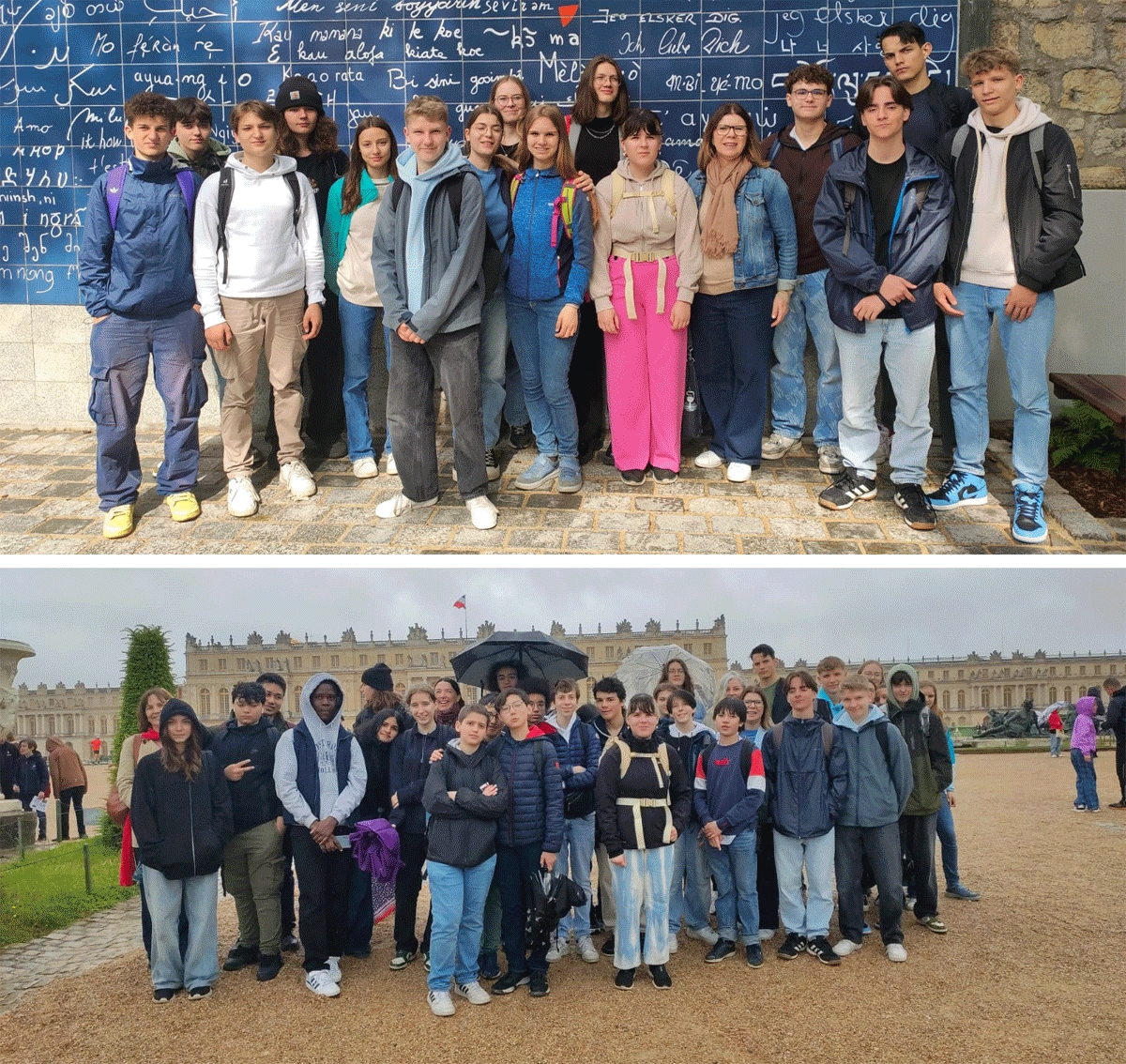 Wettertechnisch stand unser Aufenthalt leider unter einem schlechten Stern: Es regnete fast durchgängig, was uns jedoch nicht davon abhielt, die französische Hauptstadt zu erkunden. Auf dem Programm standen -neben zahlreichen Unterrichtsstunden in unserer Gastschule Saint Jean Gabriel- eine Bootsfahrt auf der Seine, ein Besuch des Schlossgartens von Versailles, das Museum für moderne Kunst im Centre Georges Pompidou sowie ein ausgedehnter Stadtspaziergang, der uns u. A. nach Montmartre, auf die Champs Elysées und in das Hallenviertel führte. An einem Abend waren wir Ehrengäste der Schuljahresabschlussveranstaltung unserer Partnerschule. Außerdem gab es eine Abschiedsparty. Ihre Freizeit verbrachten unsere Schülerinnen und Schüler mit ihren Gastfamilien und nahmen an deren Alltagsleben teil. Es bildeten sich Freundschaften und gegenseitige Besuche sind bereits geplant. A bientôt à Paris!.