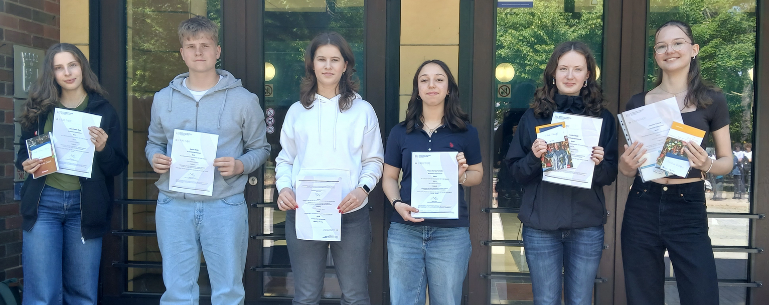 Im September wird Zeynep als einzige das Land Berlin beim dreitägigen Bundesfinale, dem Sprachenturnier, in Bonn vertreten, dann in Englisch und Französisch. Das Archenhold-Gymnasium gratuliert herzlich und wünscht beim Finale viel Erfolg! Die Preisverleihung zur Landesstufe fand am 20. Mai in der Max-Taut-Aula mit vielen beeindruckenden und unterhaltsamen Video- und Livebeiträgen von Berliner Klassen und Gruppen aus der Wettbewerbssparte TEAM in vier Fremdsprachen statt und wurde musikalisch sehr ansprechend umrahmt.